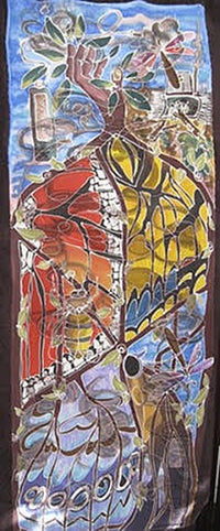In 2003, I decided to test my creative juices once more, and commit myself to the 'artistic journey'. I founded Clara Applewhaite Designs, and had my first presentation in September that same year. I have since joined representative groups of artists in the New Jersey area, and show my original artwork, at the various juried art and craft shows in the area. I specialize and continue to experiment with the 'gutta serti' method, or silk painting. My work may be described as 'wearable art'. My pieces are original, one-of-a-kind, custom art, which may be worn or hung in the home. I execute many of my designs on natural fibers, but mainly work on 100% Silk Habotai 10mm weight, silk being the preferred medium for the technique. Silk is durable, luxurious, and transcends every season. It lends a light and natural luminous quality to my pieces. (I use Dye-Na-Flow silk paints from the Dharma Trading Company, because they are vivid, non-toxic, and easy to set.) My designs are bold and vivid, depicting elements of flora and fauna, inter-twined with striking motifs of my multi-cultural Trinidadian heritage; that is, African, Amerindian, East Indian, Chinese, and European. Recently, I have used my work to voice my displeasure in the visible degradation of the eco-environment, brought about by the disdainful neglect of society, particularly in my island home. These images can be seen in my one-woman exhibition, "Paradise Losing" of 2009, followed by "Earth Skins" exhibition of 2011. This latter exhibition concentrated on the origins of man, and the many ways 'we' must begin to re-connect with 'Mother Earth', in order to sustain a balance in nature. Far too many species of plants and animals are becoming extinct, as a result of so-called 'progress'. We must begin to set aside the arrogance and selfishness of man, in order to enable a natural co-existence, and to realize that without one, the other ceases to exist. Therefore, 'Earth Skins' continues to grow. My next body of work, 'Fractured Masks', is a direct 'off-shoot' of 'Earth Skins' and it realizes the truth that all of the original world cultures, are themselves endangered. The work seeks to identify and to bring to light, the threatened cultures around the world, through their primal masks and or face-paintings.