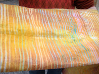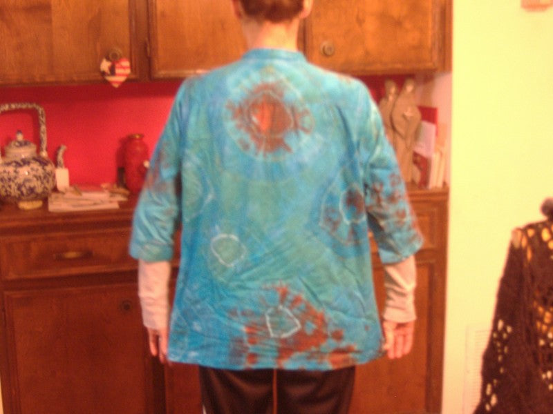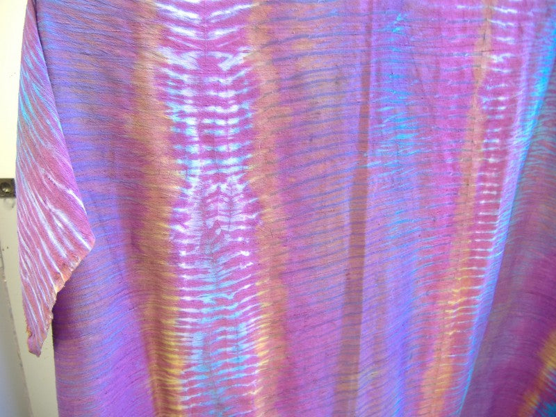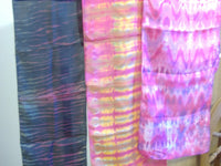 I started dyeing again after a 30 year hiatus about five or six years ago. First, I was dyeing baby onesies, and now I am doing commissioned art pieces and I have several accounts in which I dye other people's products for their resale. I use a variety of techniques, especially Japanese Shibori styles and arashi/tube tying. I am also trying to understand Mudmee techniques better, and I believe I am getting there.