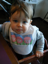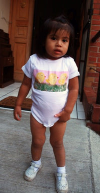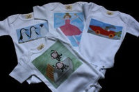 I use acrylic paints on cotton canvas. We then take high-resolution photographs and print those images onto Dharma 's super soft transfer paper. We take the images on the transfer paper and heat press them to 375 degrees for 30 seconds onto a variety of cotton and bamboo blanks purchased from Dharma. We have heat pressed onto T-shirts, dresses and onesies purchased from your site. We also create quilt squares and giclees.