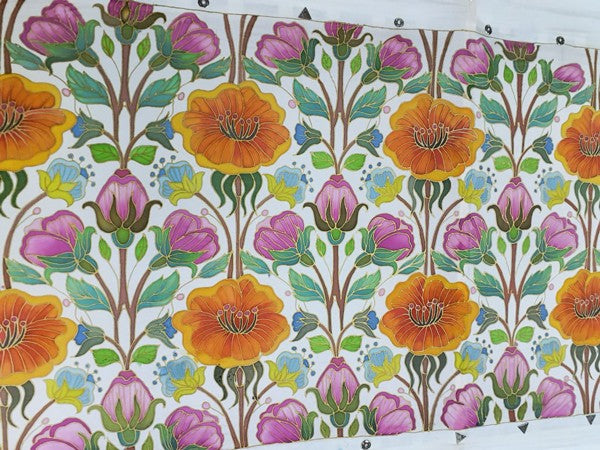 Tamara paints silk sarees, paintings, scarves, and more. She loves colour! Silk painting is a medium that I love to work with because every time it surprises you. Creating and exploring new techniques and ideas is always a joy. I love the Jacquard Green Label silk dyes and the different types of beautiful silk fabrics, which make painting and creating so much fun. I have been silk painting for over 28 years and teaching art for over 26 years. Silk is such an amazing medium to work with—the colours are so stunning, and once you start, it’s very hard to stop. I like to do still life, landscapes, paintings, wall hangings, and much more.