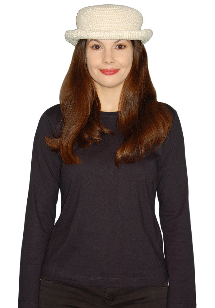 Whoa! Blast from the past. The Cotton Yarn Blossom Hat is made from 100% cotton and is single knit crochet. A nicely made firm hat with minimal to no shrinkage washing. Dye it with our Fiber Reactive Procion Dyes and embellish it with ribbons and more! For adult head sizes small to medium.