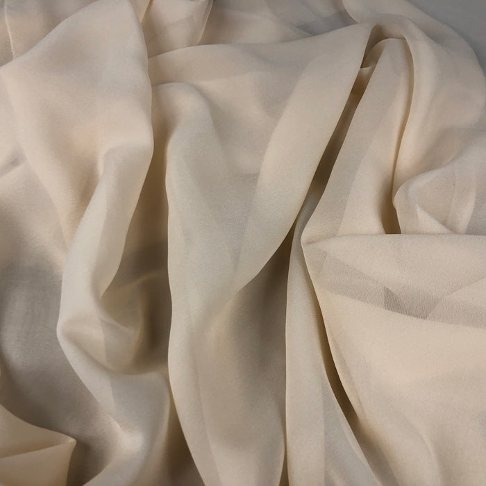 An elegant, sheer fiber with a soft beautiful drape and a crepe like texture. Wider and heavier than our 8mm Chiffon.