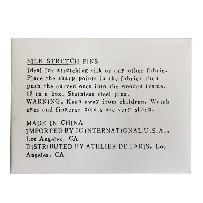 For stretching and suspending silk or other fabrics for hand painting. Can be configured multiple ways depending on your stretching needs. The 2 straight prongs can be set into the silk hem and the backward angled prongs can be hooked around rubber bands or even hooked into the Arty's Adjustable Frame bars.